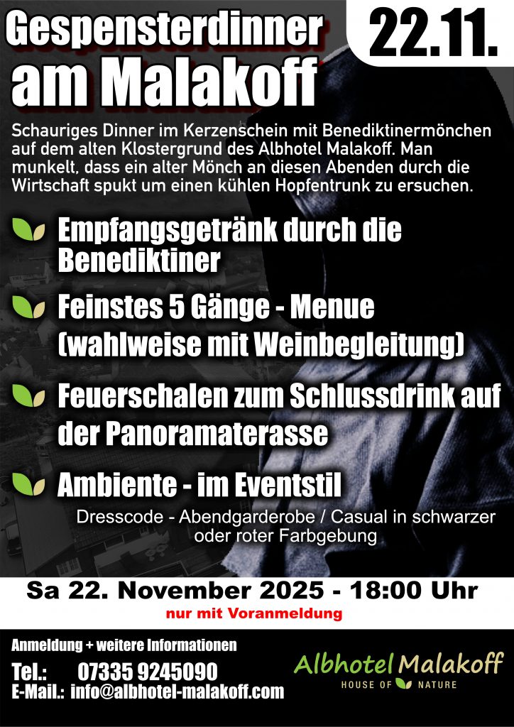 Unser Albhotel Malakoff präsentiert sich ihnen an einem herrlichen Standort der schwäbischen Alb, des ehemaligen Benediktinerklosters, oberhalb des Städtchens Wiesensteig, in einmaliger Aussichtslage, der Erlebnisregion Albtrauf!